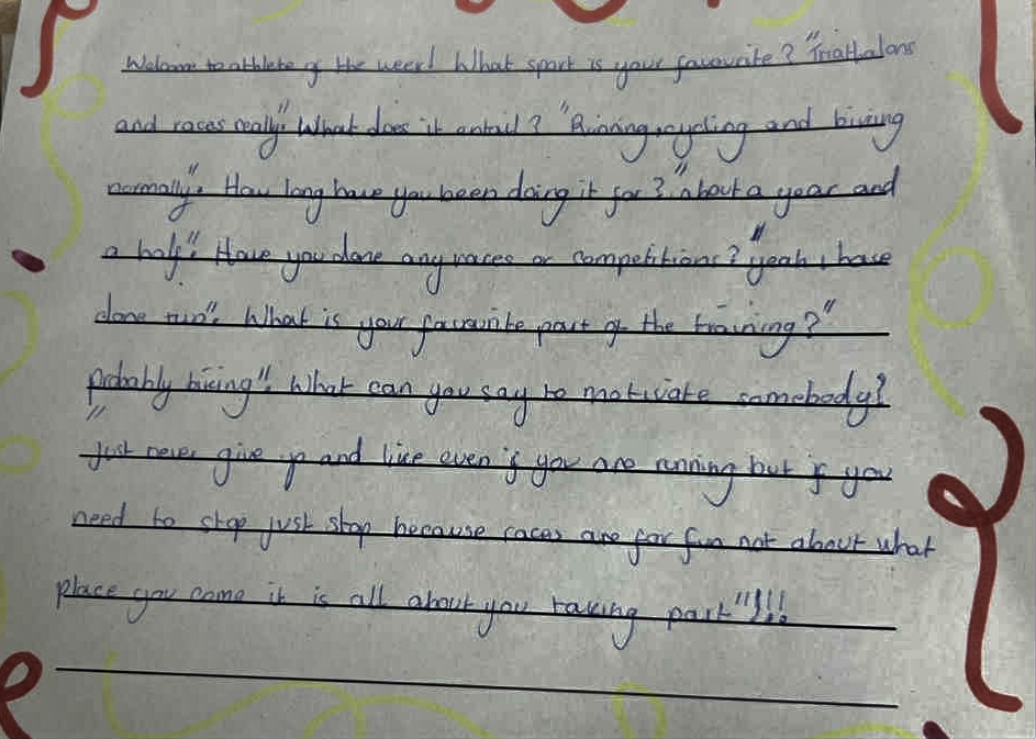 Our first featured athlete is a talented triathlete! He shares insights into his training routine and offers inspiring advice to motivate others on their own fitness journeys.
